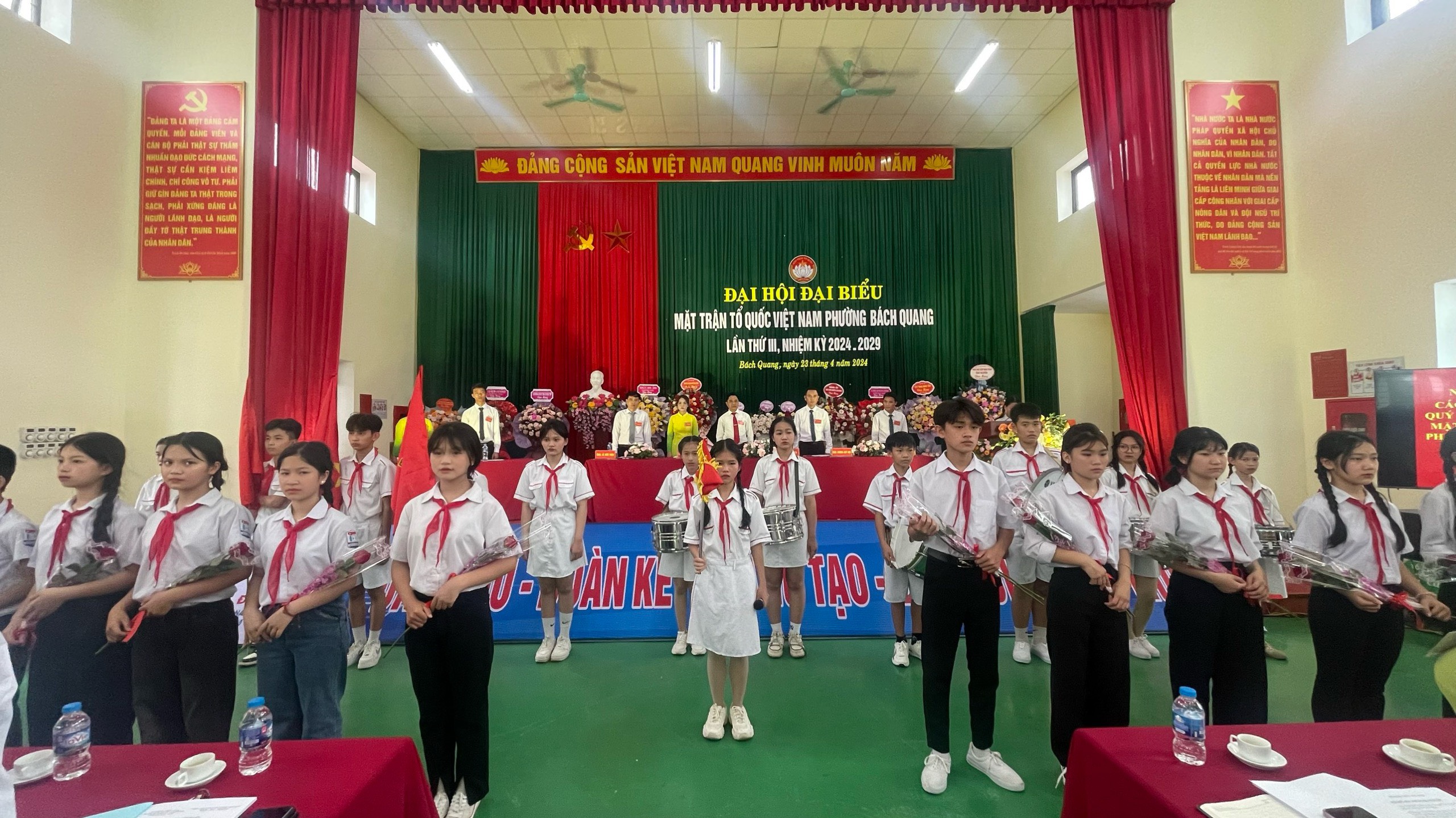 ( Đoàn thiếu nhi đến chúc tặng hoa và chúc mừng Đại hội)